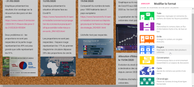 Vous pouvez aussi organiser le padlet par colonnes, en utilisant le format "étagères". Si vous nommez les colonnes selon les biais identifiés préalablement, les élèves pourront classer leurs graphiques en fonction de celles-ci. Pour changer le format :