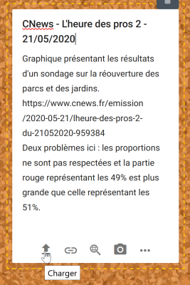 Vous pouvez donc facilement constituer un corpus en important dans un padlet les graphiques glanés dans les médias (vus à la télévision, dans les journaux, dans la presse en ligne, etc.). Vous pouvez aussi y indiquer la source et ajouter un commentaire, par exemple pour expliquer le biais ou l'erreur de représentation identifié.