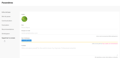 Le nom d'utilisateur est important car il apparaît dans l'url de vos padlets. Pour le personnaliser :